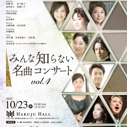 10/23 みんな知らない名曲コンサートvol.4 10月 23 Thu 2025 Concert チケットのお問い合わせはこちらまでどうぞ! mail@yamamotokohei.jp 前のスケジュール 次のスケジュール